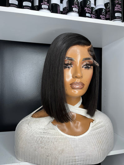 12" Premium Virgin Bundles HD 5x5 lace side part bob Ready to wear Completely glueless with band for extra security.